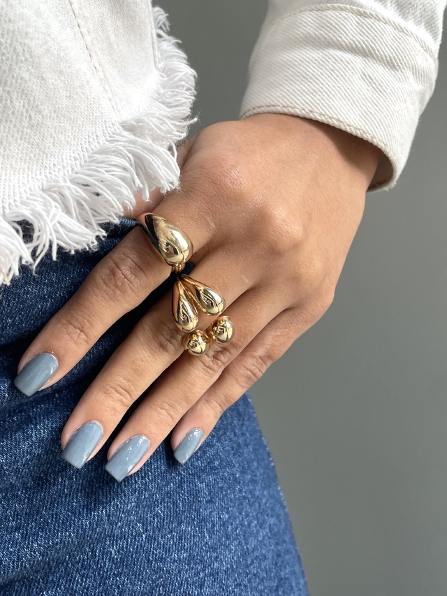 Anel bold gota única banhado a ouro18k