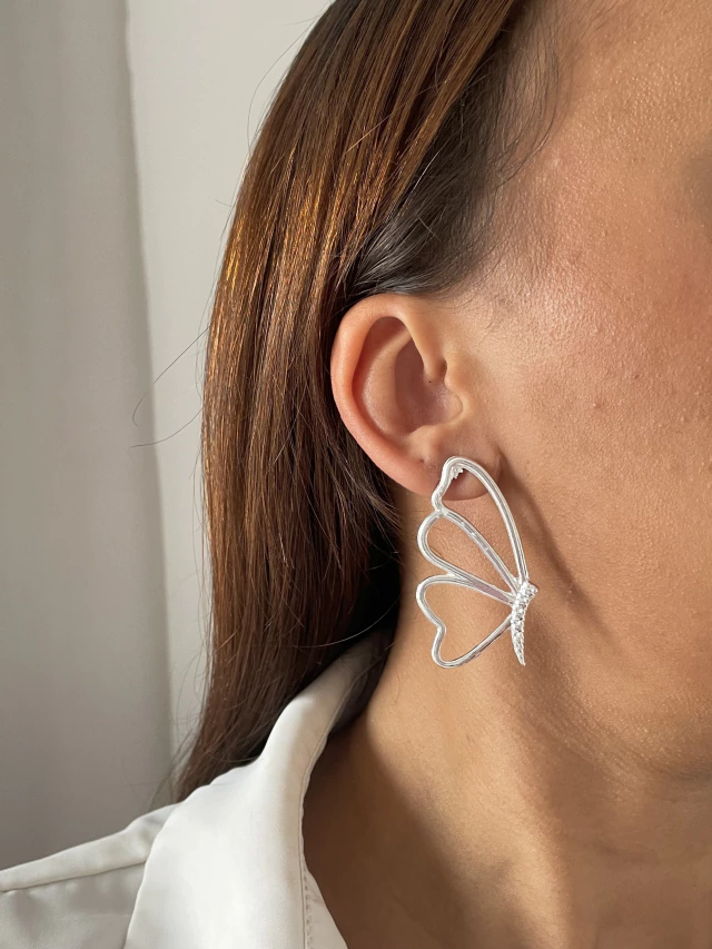 Brinco meia borboleta G banhado a prata