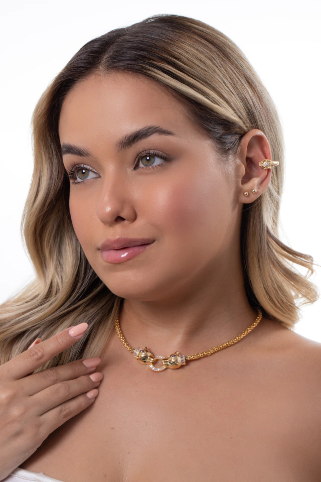 Essa choker é imensamente GRA-CI-O-SA! Seu design possui um pingente com um círculo central cravejado por zircônias e dois tigres bem detalhados nas laterais. Os tigres além de lindíssimos, possuem significados como força, determinação, bravura e coragem para enfrentar desafios. Essa gargantilha é sem dúvidas um modelo magnífico para utilizar em ocasiões especiais. Encontre esse e muitos outros modelinhos belíssimos disponíveis aqui no site da Cheias de Charme Joias e aproveite!