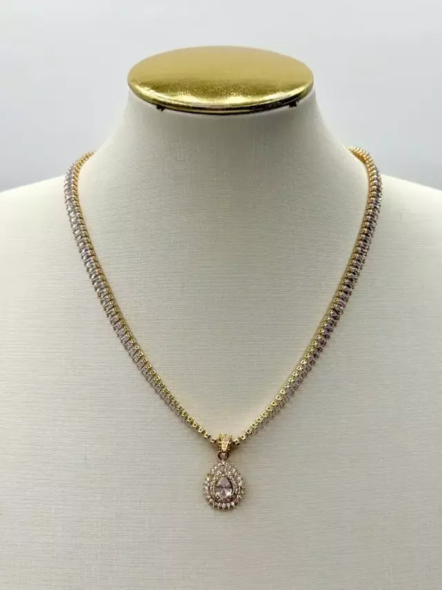 Colar prime zirconia baguete gota banhado a ouro 18k