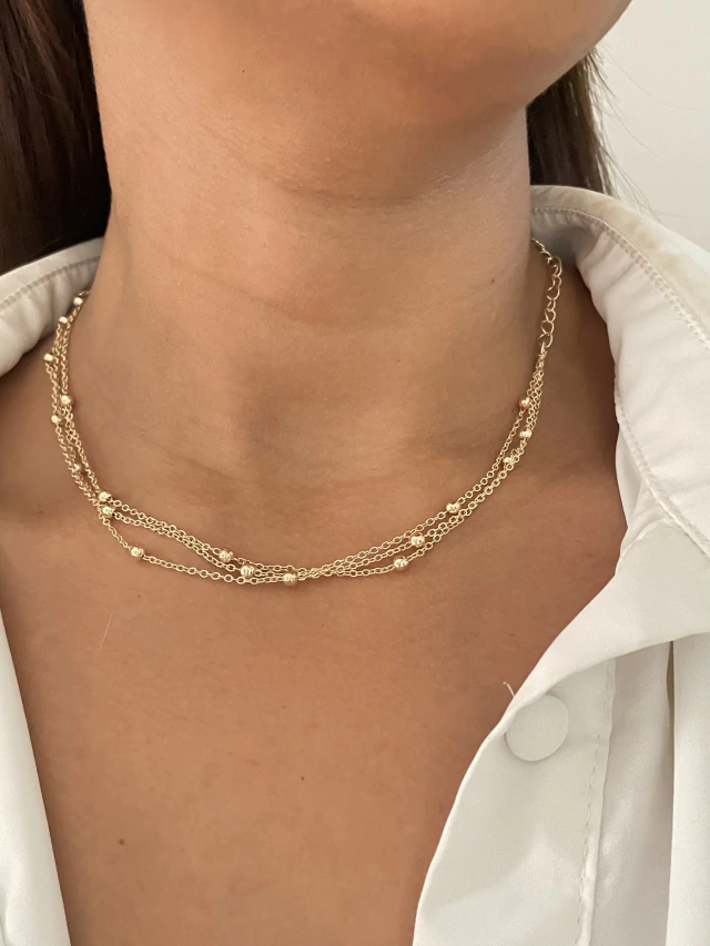 Colar triplo esferas delicado banhado a ouro18k