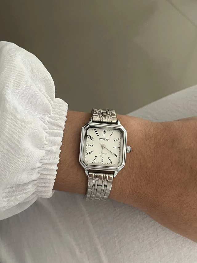 Relógio quadrado P de aço e a prova d’água prata com branco